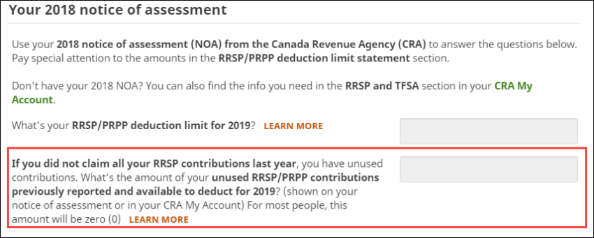 Note: If you’re downloading your information into your return from the Canada Revenue Agency (CRA)’s website using the AFR service, your RRSP contributions, deduction limit, and any unused amounts will also automatically download into your return.